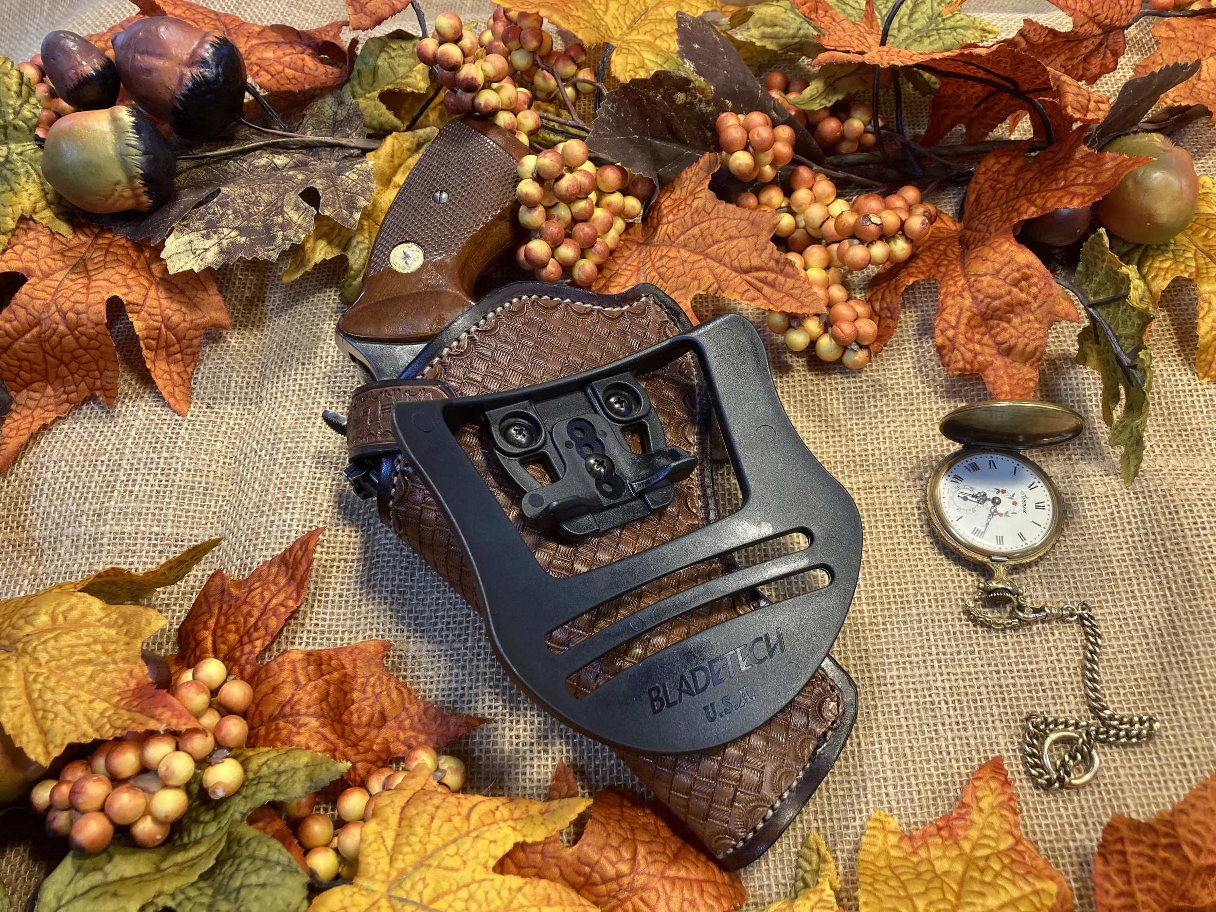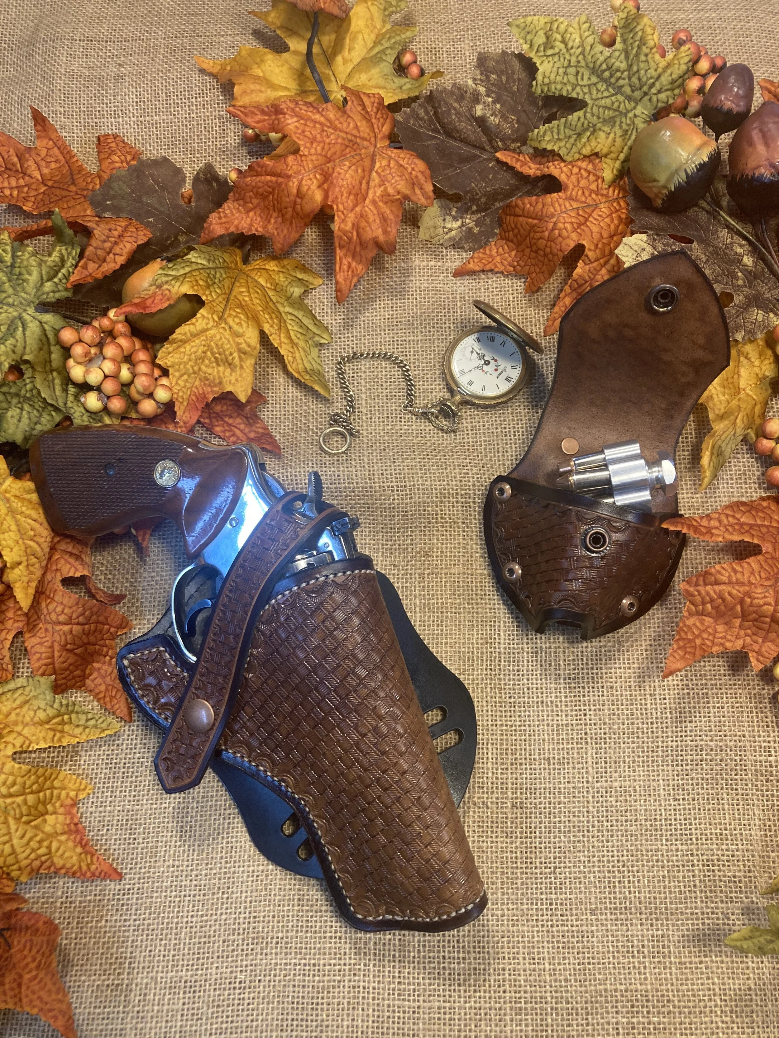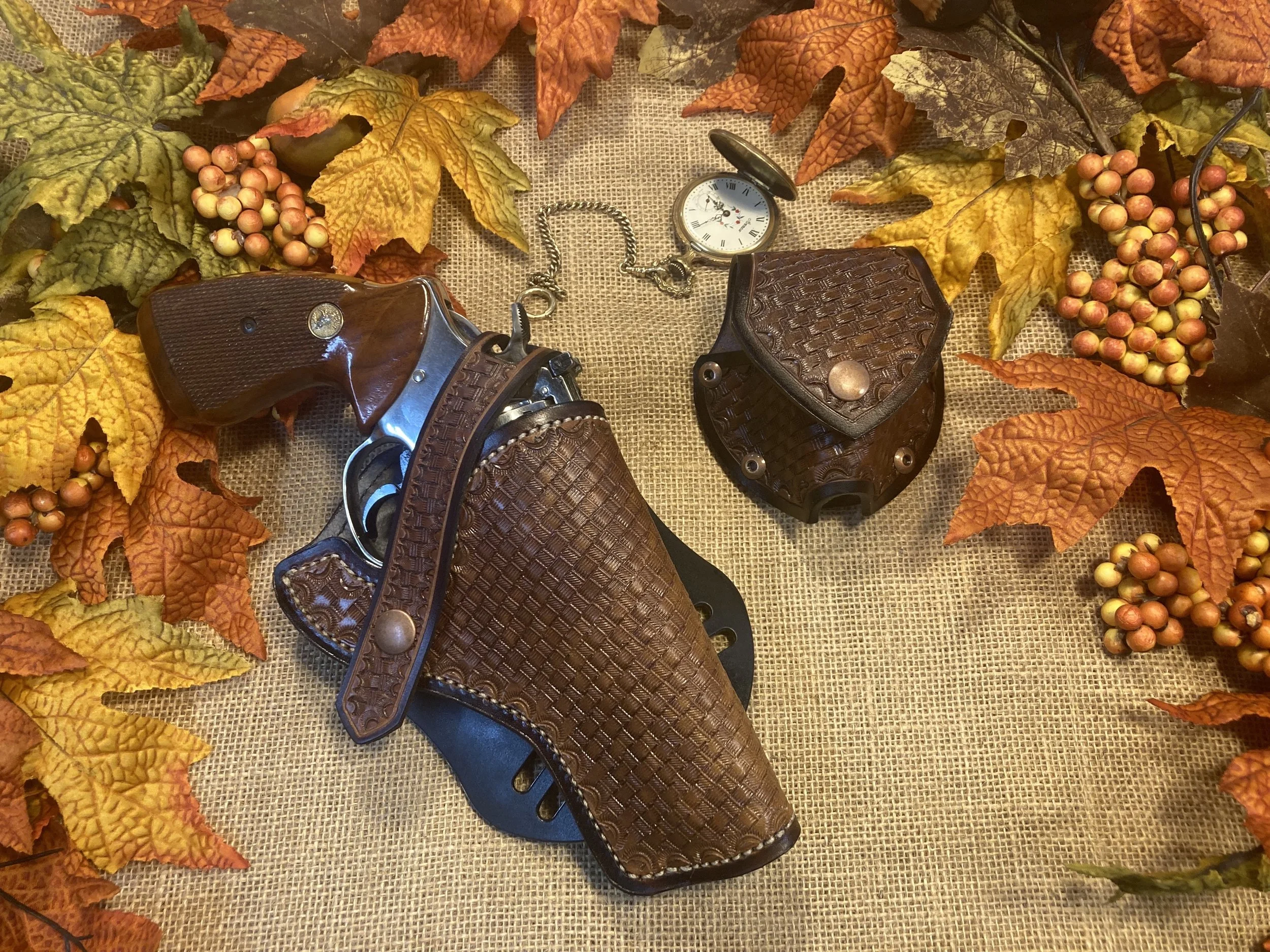 Made for any weapon you might own. Single speed loader. Slight forward cant. Right Hand holster. You may order left hand draw also in various colors.