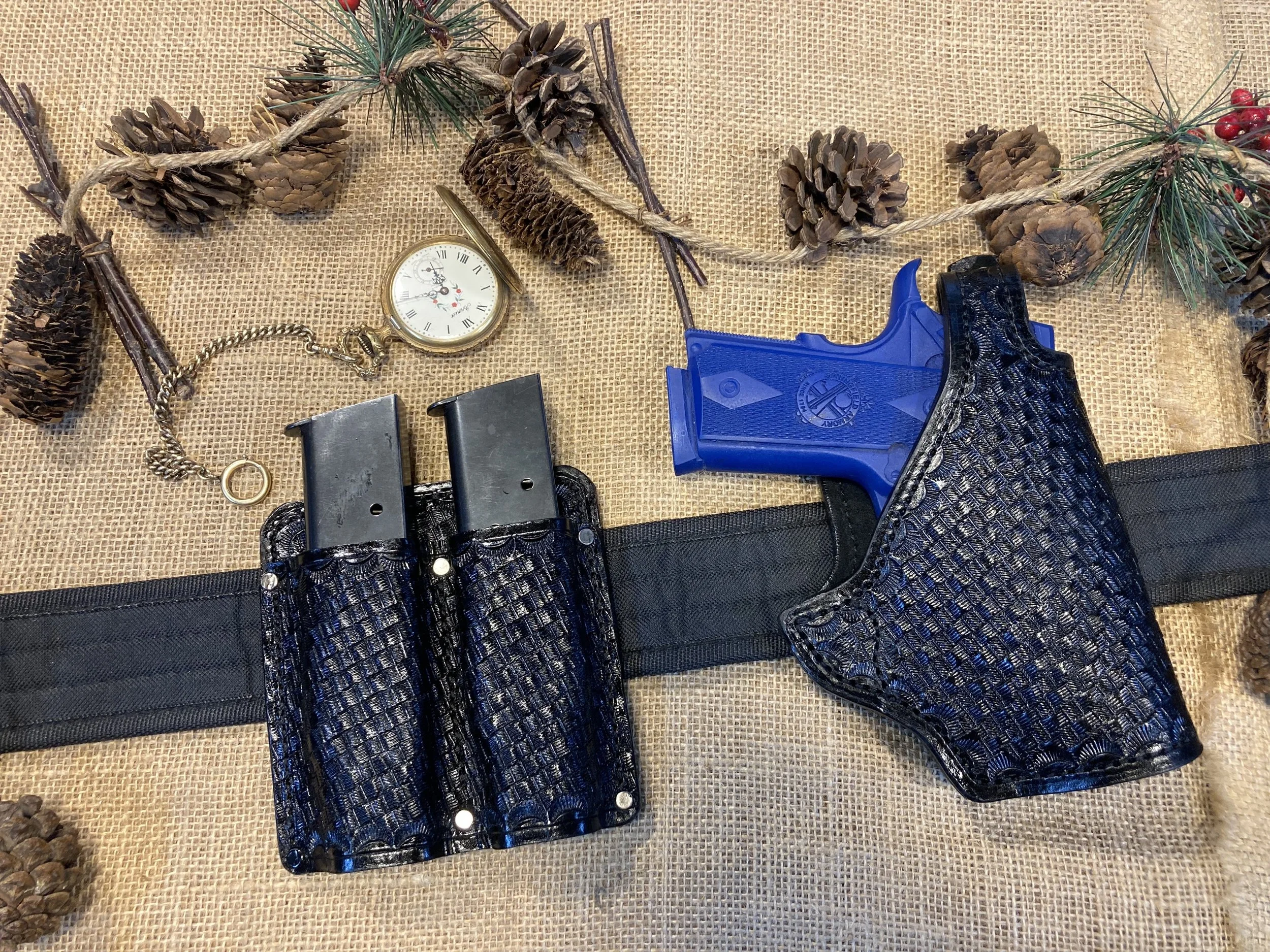 Duty belt not included. Holster and Mag holder may be made to fit your belt.