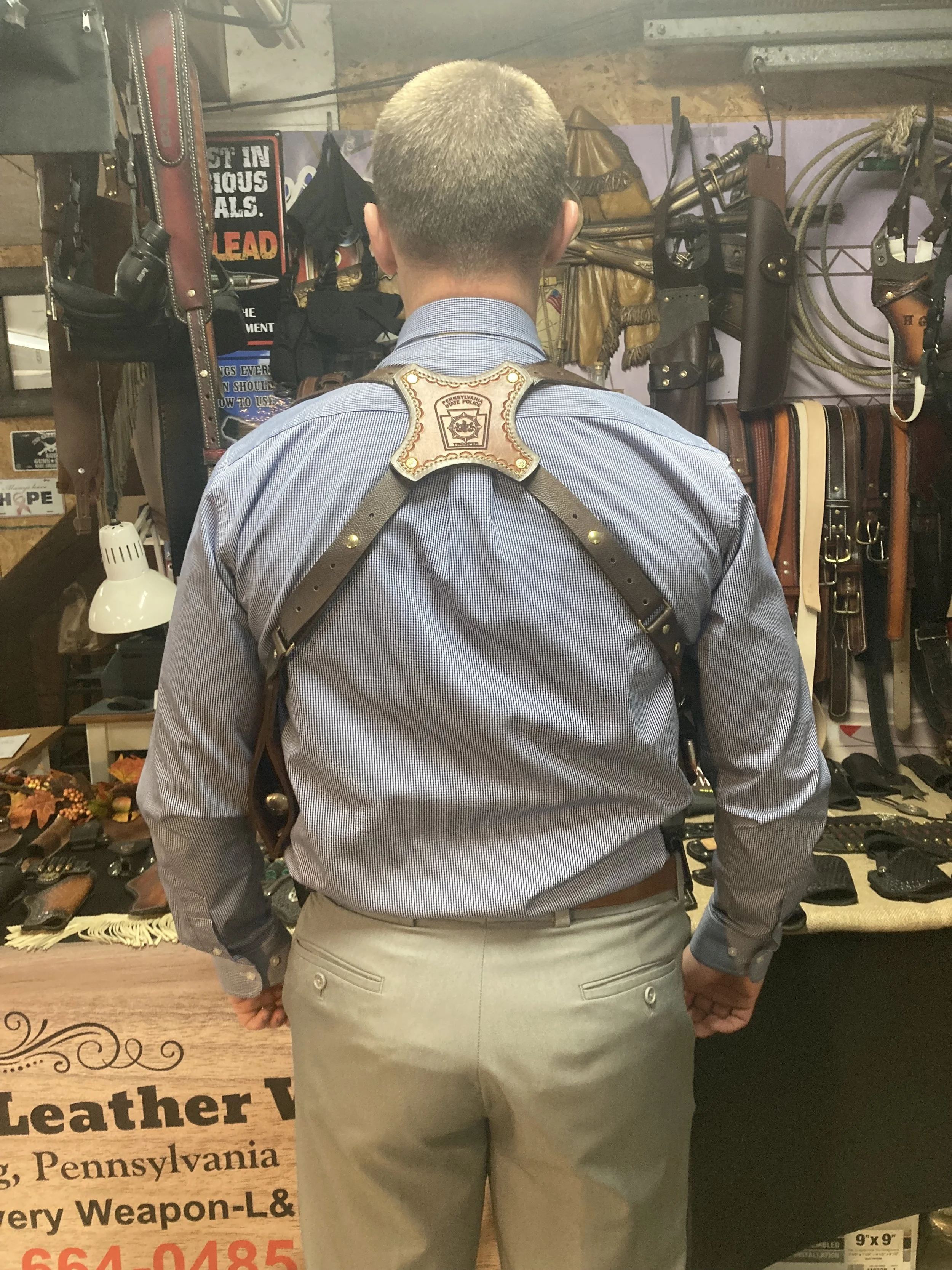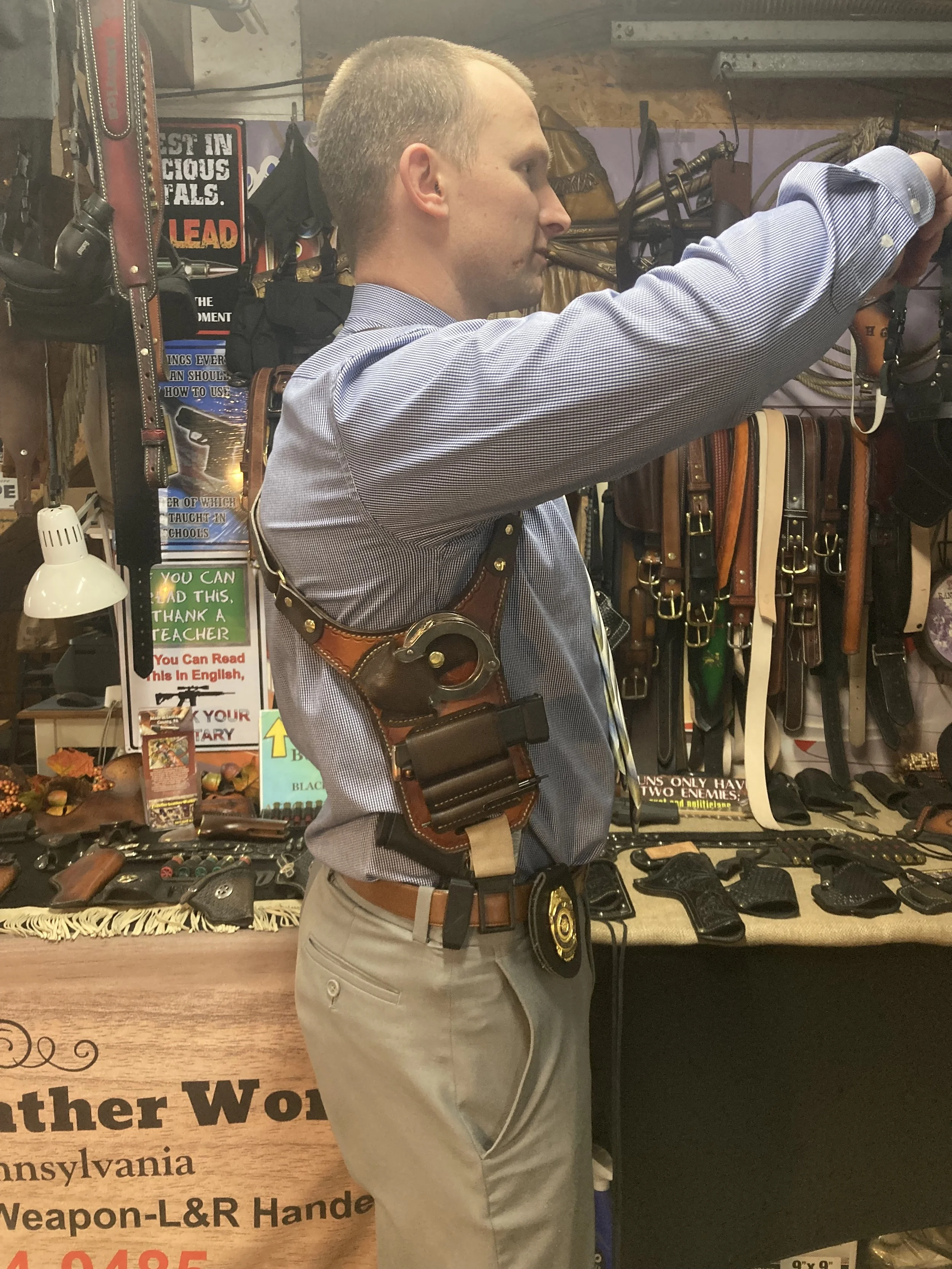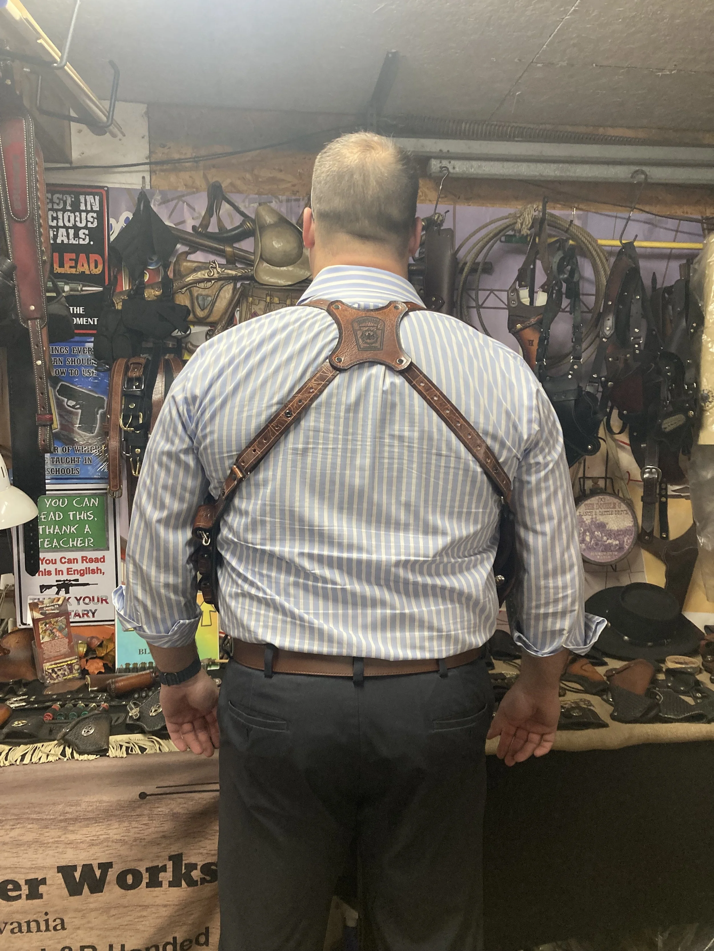 Below phots are simply to show that we can make this custom shoulder rig for both revolvers and automatic weapons.