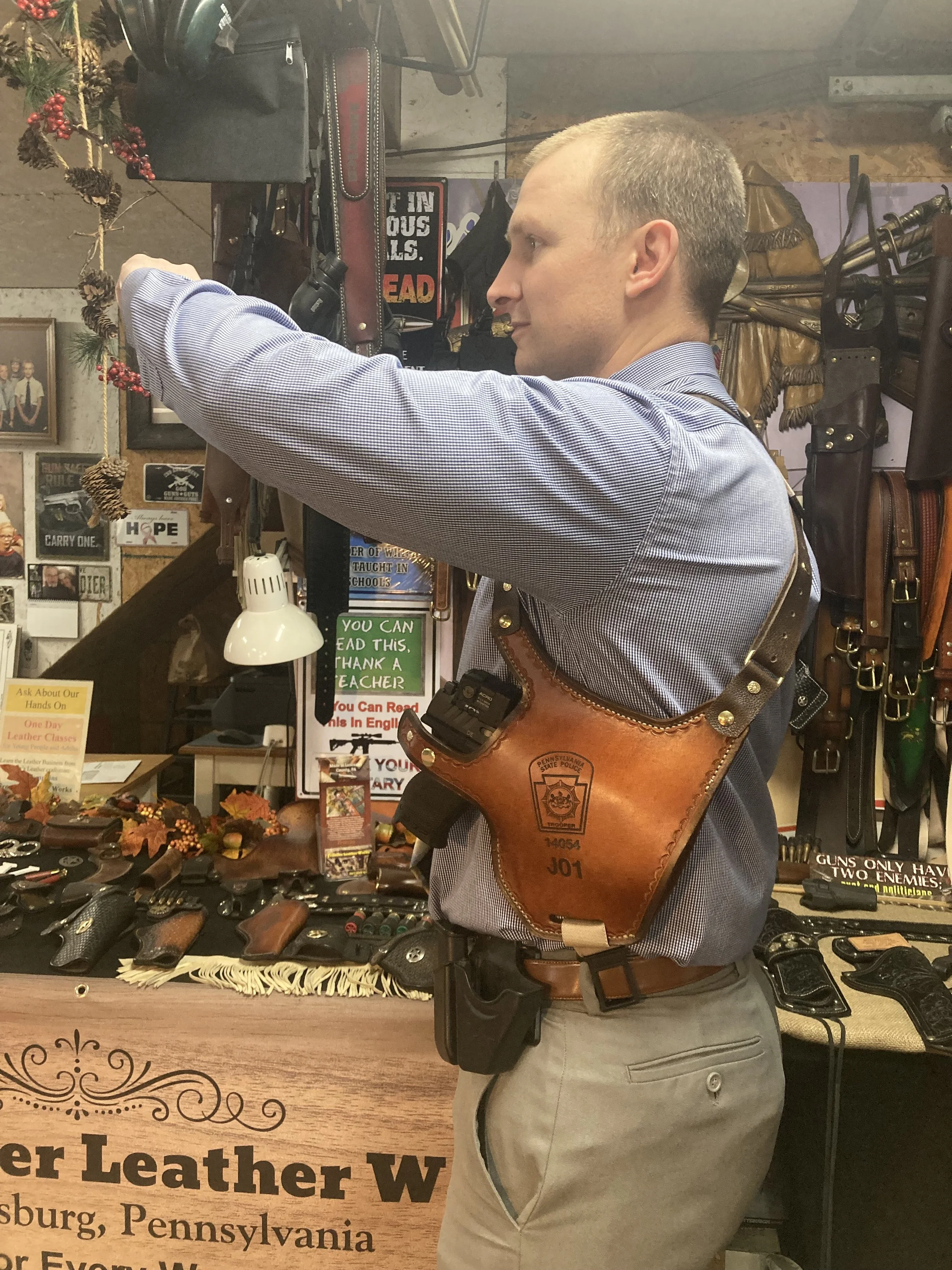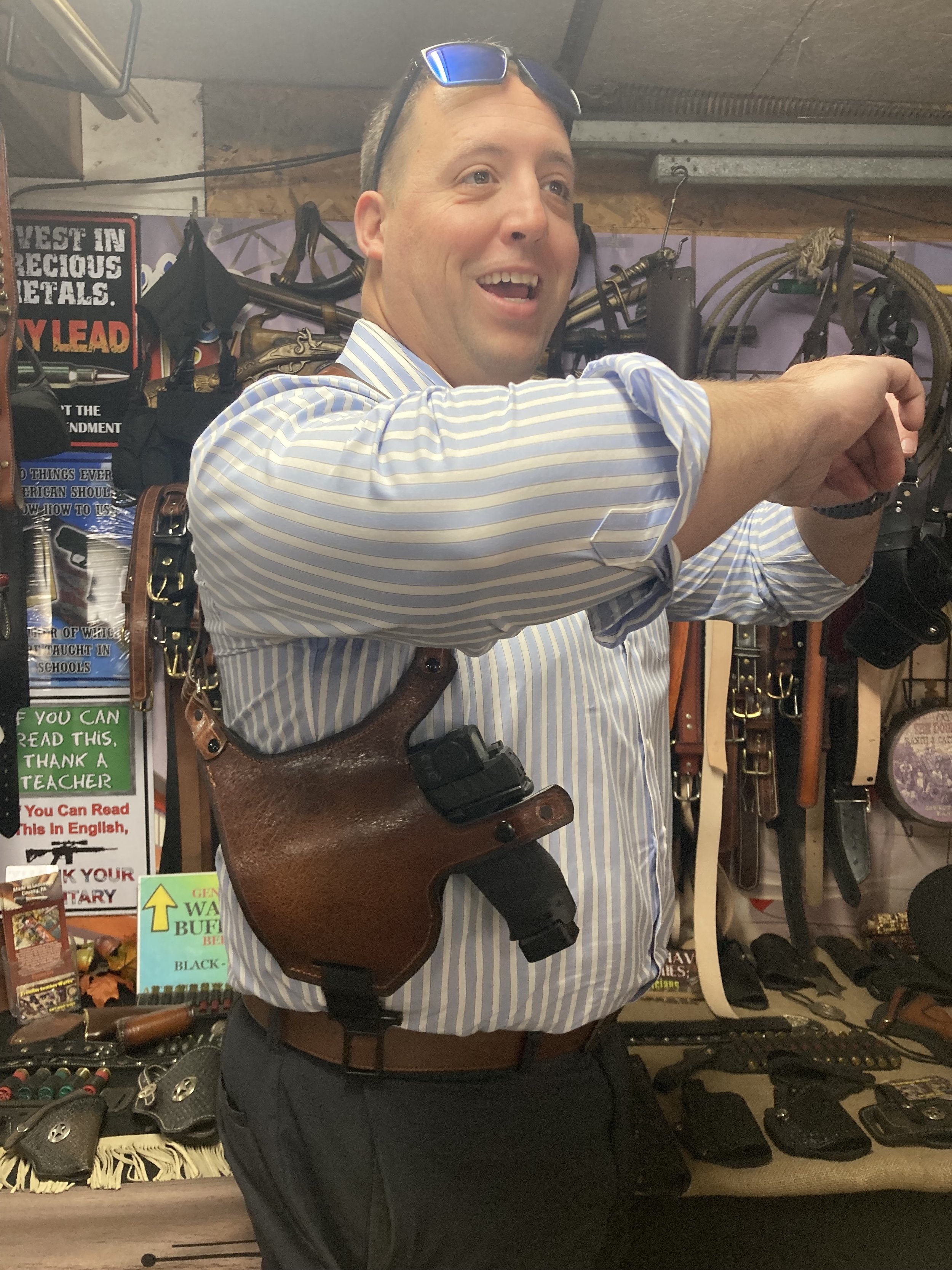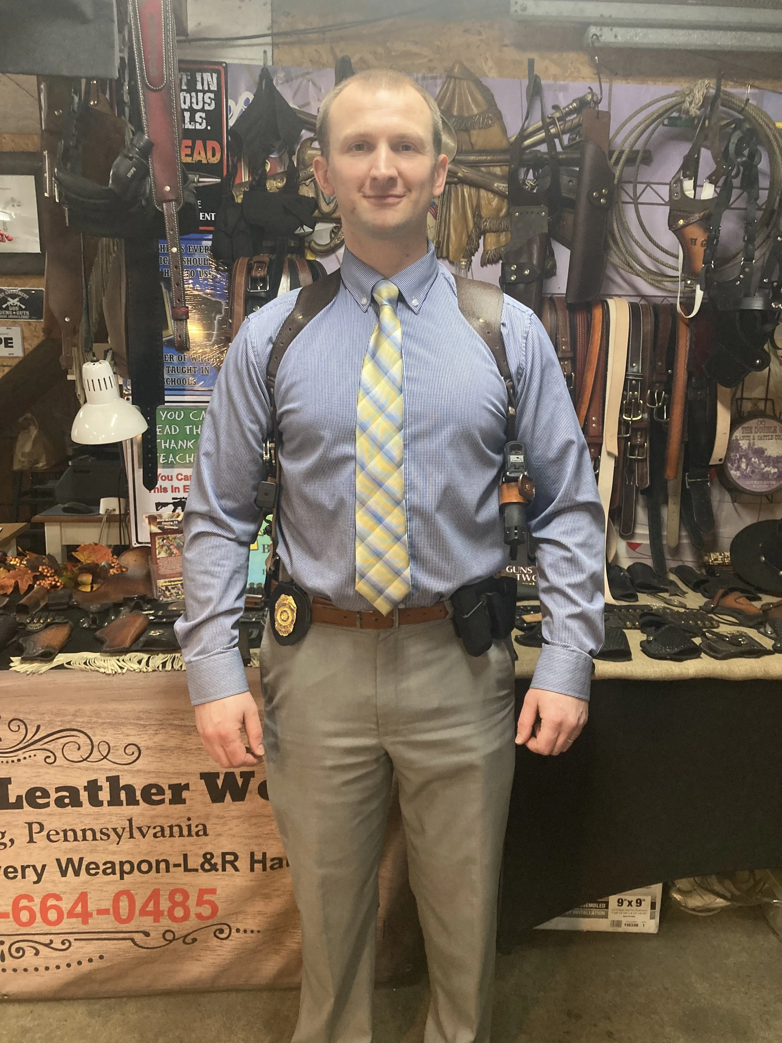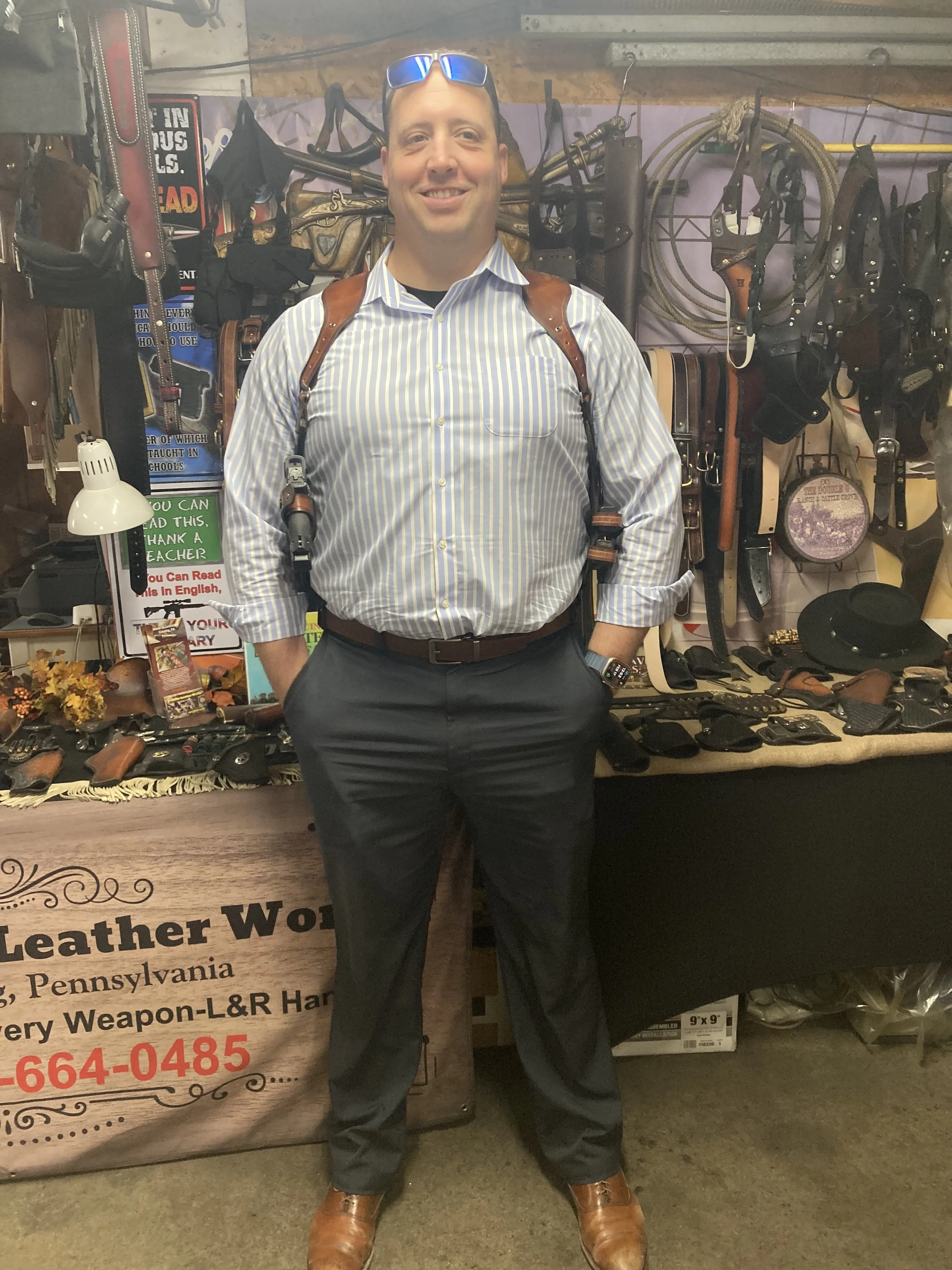 Below phots are simply to show that we can make this custom shoulder rig for both revolvers and automatic weapons.