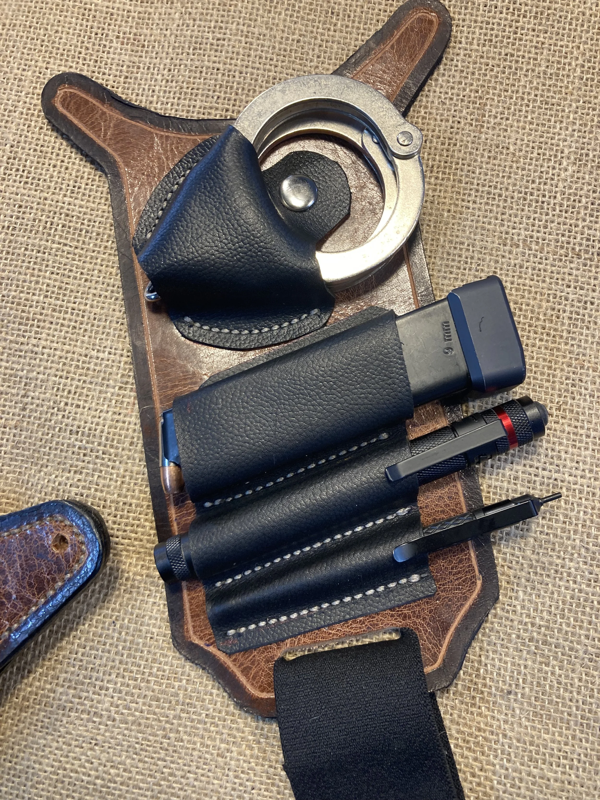 Baton Holders come in Black, Tan and Dark brown and they swivel for easy sit down. Made to fit your duty belt.