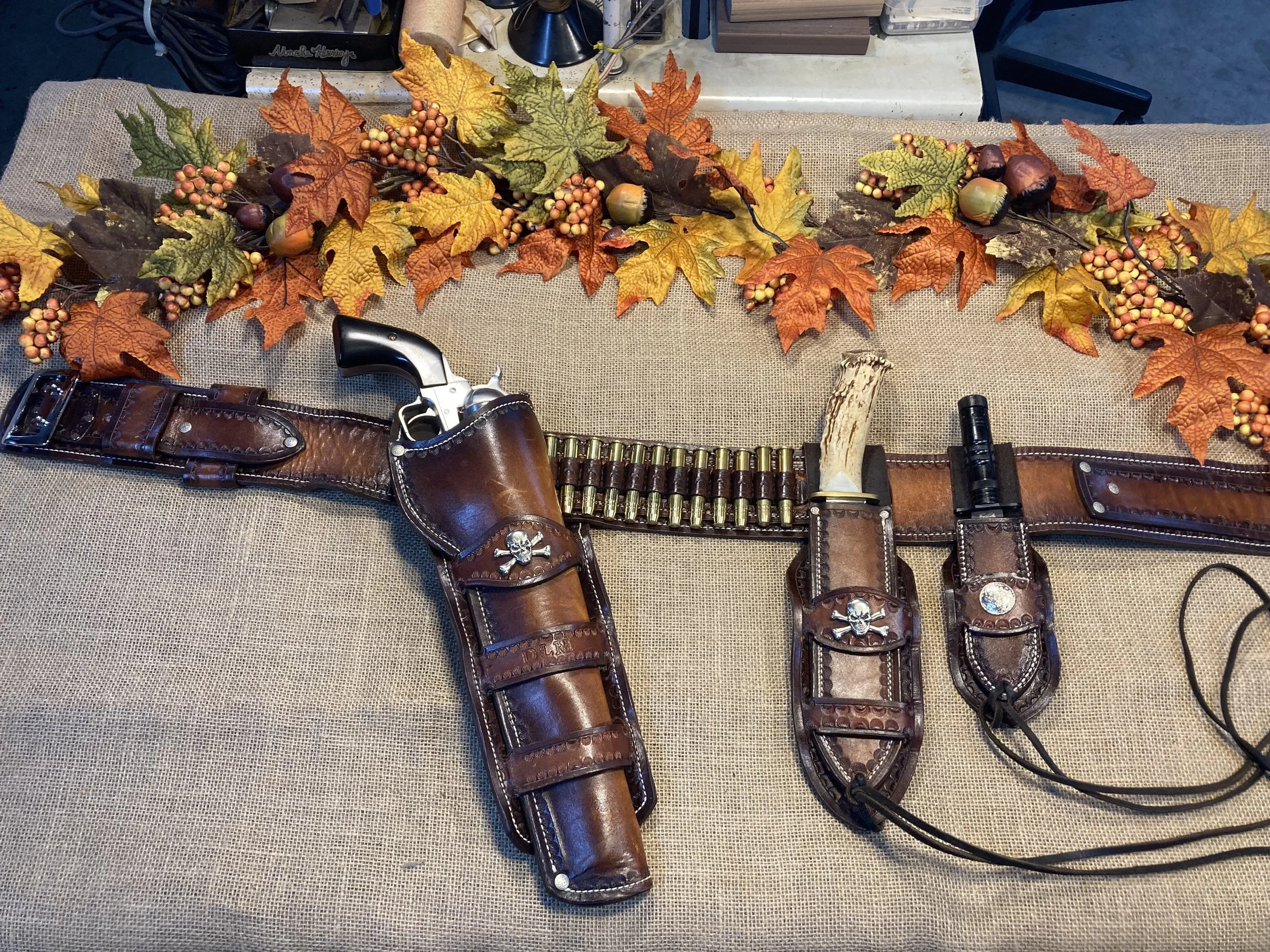 Price varies depending on the style and time required to make such a rig. If interested call Leather craftsman L.B.Tompkins at 267-664-0485. We custom make every rig to your specs.