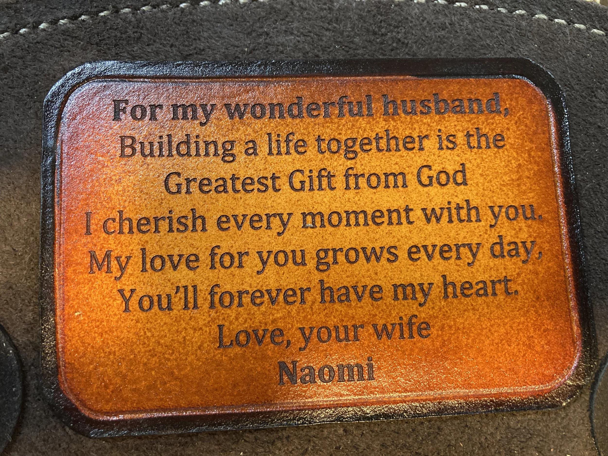 Completely hand crafted of a heavier gauge leather and suede lined with a shoulder strap. Made to fit.