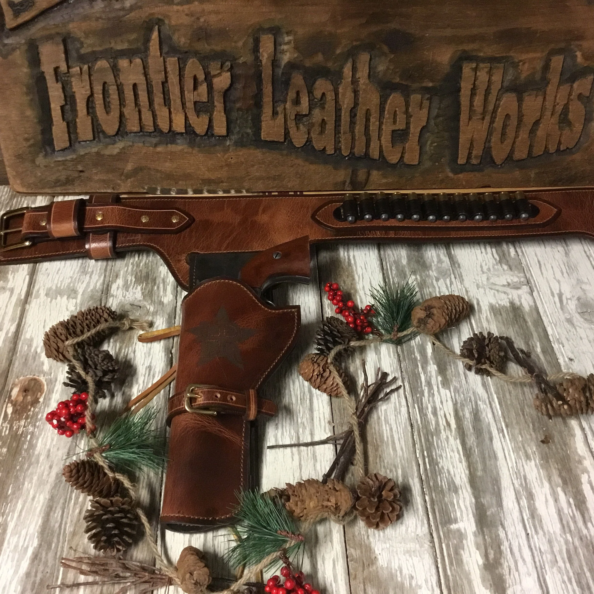 Every leather product handmade by Frontier’s leather craftsman L.B.Tompkins is made of the best leathers money can buy and made to last into the next generation. Handcrafted from start to finish these cowboy holsters may be ordered in various colors and sizes to fit your needs. Live in the area? Stop in and watch your rig being made. For more info call Frontier’s leather craftsman, L.B. Tompkins today at 267-664-0485